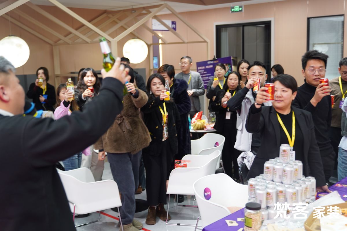 北邊奧體中心店規模為最,承載著梵客家裝品牌旗艦的展示與輻射功能。榮耀之夜,北店精英歡聚一堂,負責人劉佳星送上祝福,和大家共同開啟了新一年的逐夢計劃。