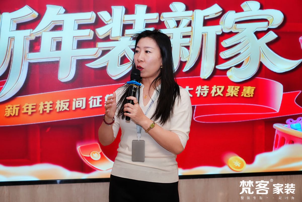 梵客集團副總裁/梵客家裝總經理任琳女士也為大家帶來“新年裝新家專享升級大禮包”,以及樣板間征集相關福利,特權加持,助業主朋友裝修順利、早日入住暖暖的新家。同時還向大家解讀了梵客家裝一直以來踐行的“五好家裝標準”,即“好品牌、好產品、好體驗、好交付、好服務”,讓大家能更清晰地了解梵客家裝,裝修省心安心放心。